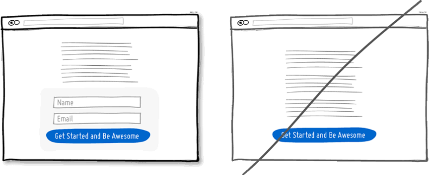 當我們希望使用者做有價值的動作,如:留下聯絡方式、基本資料等,最好把填寫用的欄位或表單放置本頁上。若能與頁面整合在同一層,會比讓使用者連結到別頁輸入資料來的好。